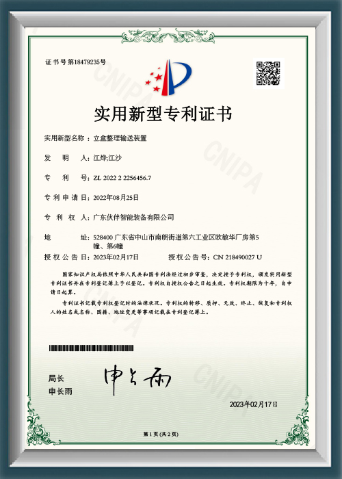 ZL2022222564567 - Box Sorting and Conveying Device - Utility Model Patent Certificate