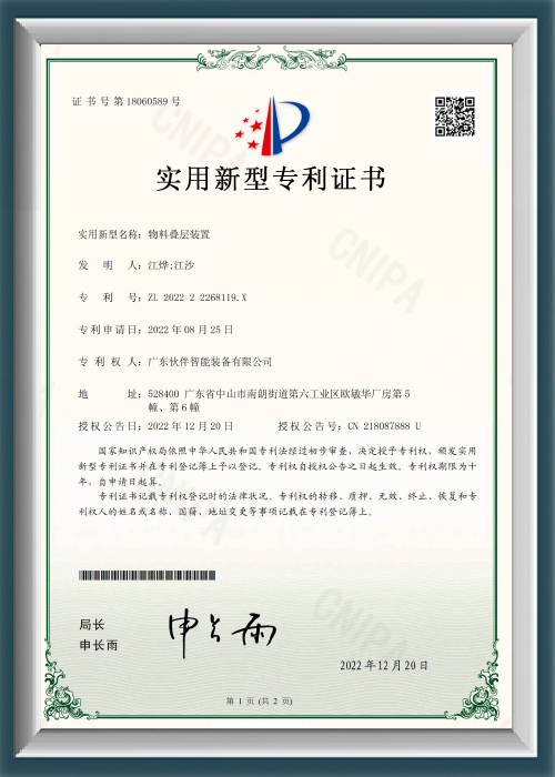 ZL202222268119X - Material Stacking Device - Utility Model Patent Certificate