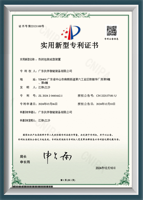 ZL2024204416621-热封包装成型装置-实用新型专利证书