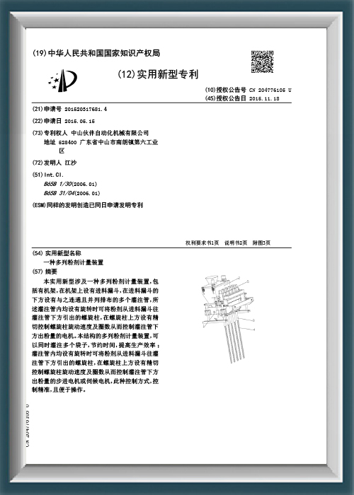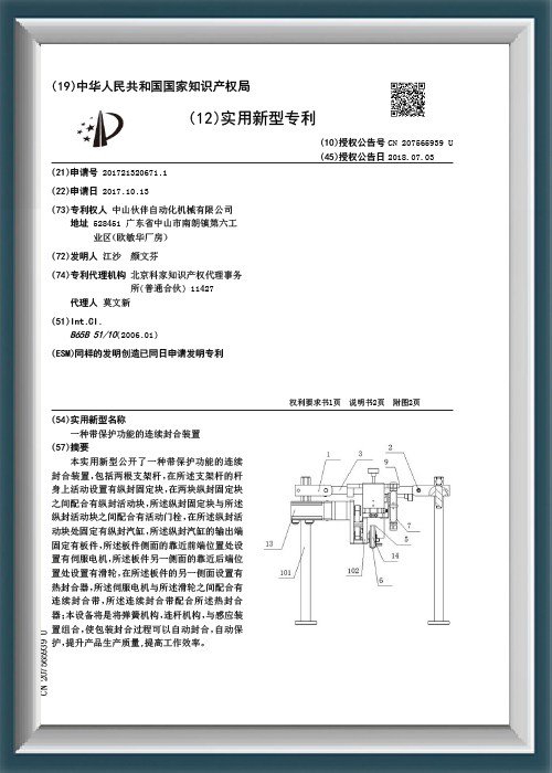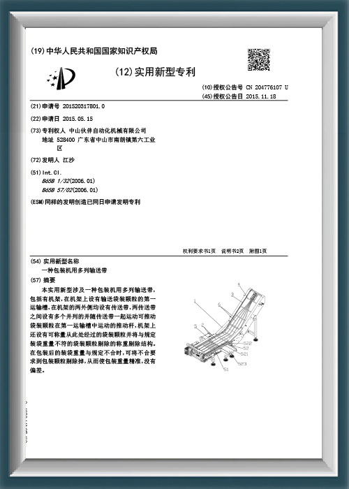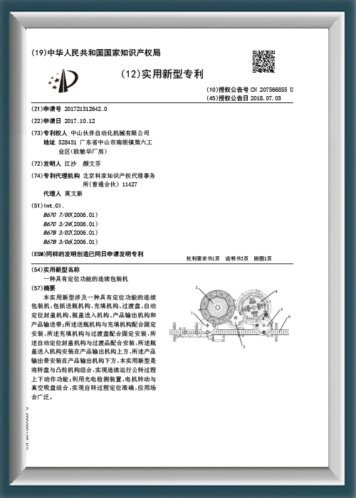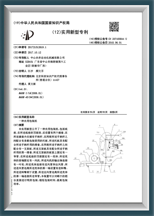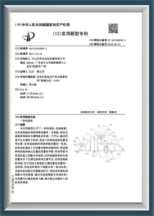 Agricultural Packaging Machine - Utility Model Patent Certificate