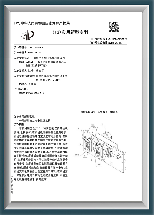 A novel double-belt pull-bag mechanism - Utility Model Patent Certificate