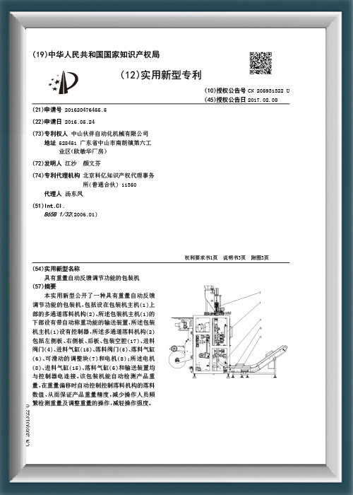 Packaging machine with automatic weight feedback adjustment function - Utility model patent certificate