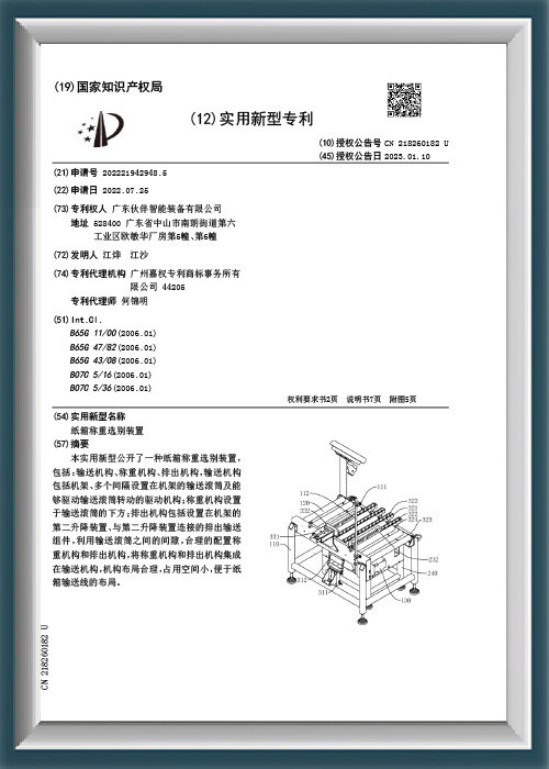 Cardboard box weighing and sorting device - Utility model patent certificate