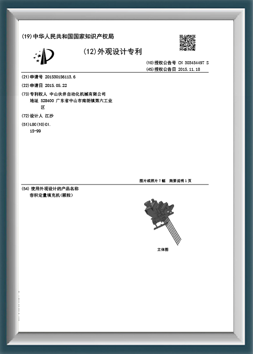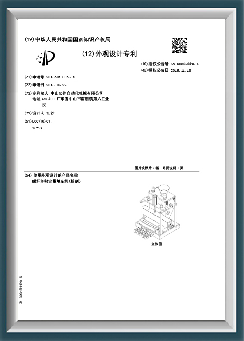 Screw volumetric quantitative filling machine (powder) - Design patent