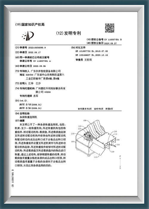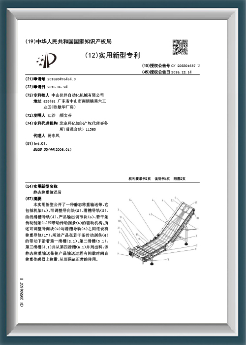 Static Weighing Conveyor Belt - Utility Model Patent Certificate
